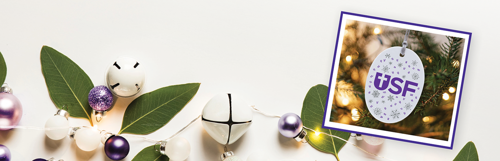 Show your school spirit and decorate your Christmas tree with a one-of-a-kind USF ornament, all while making a difference in the lives of students. Add this year's USF Christmas ornament to your collection with a donation to the USF Fund and help support the areas of greatest need.