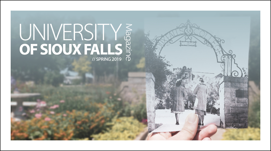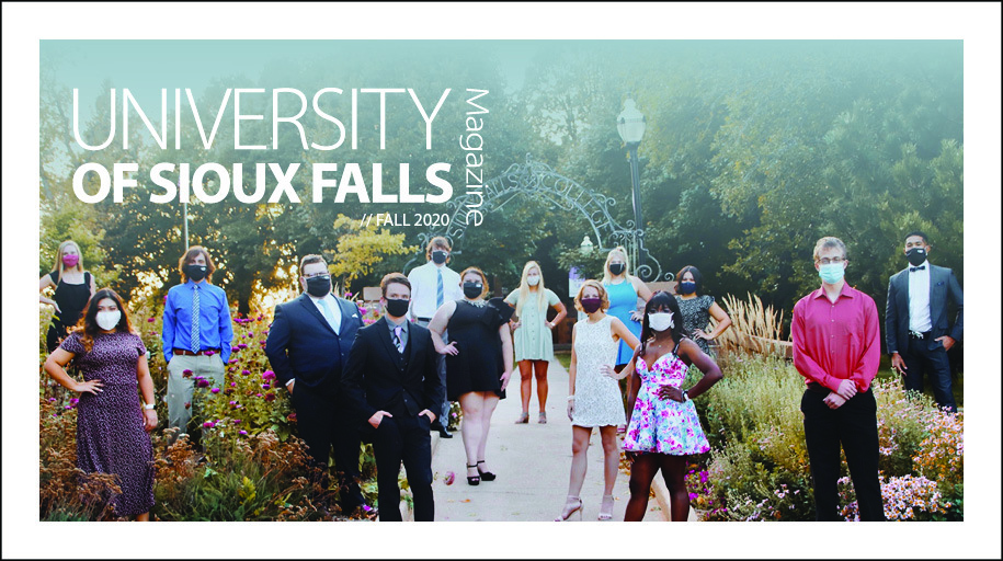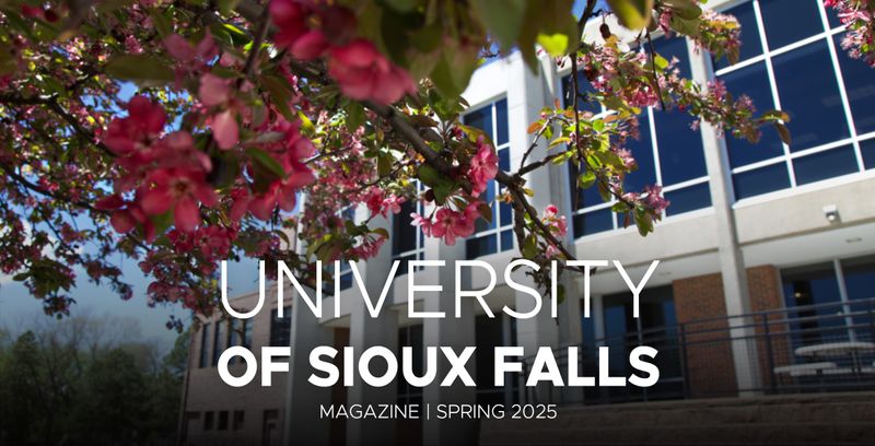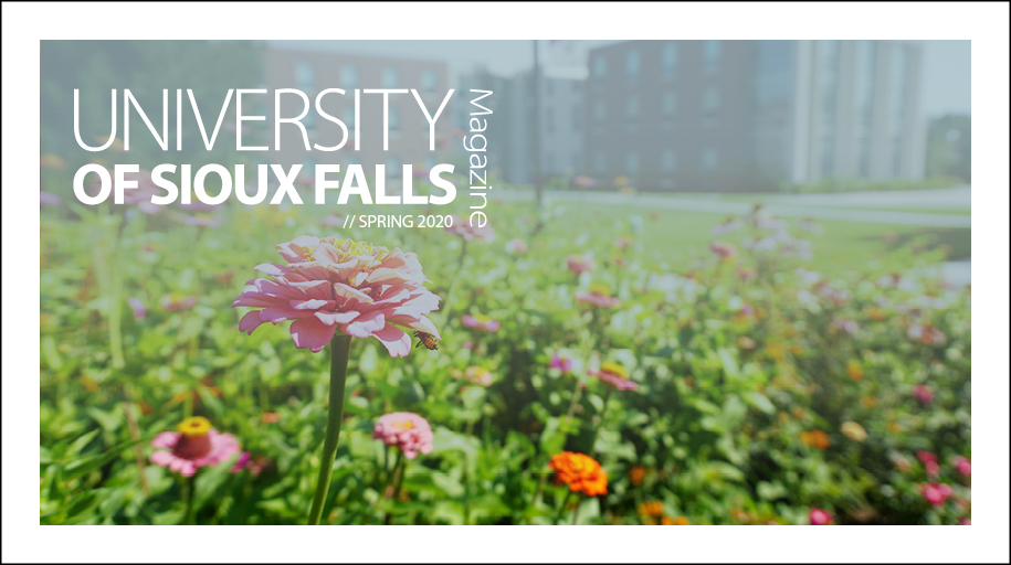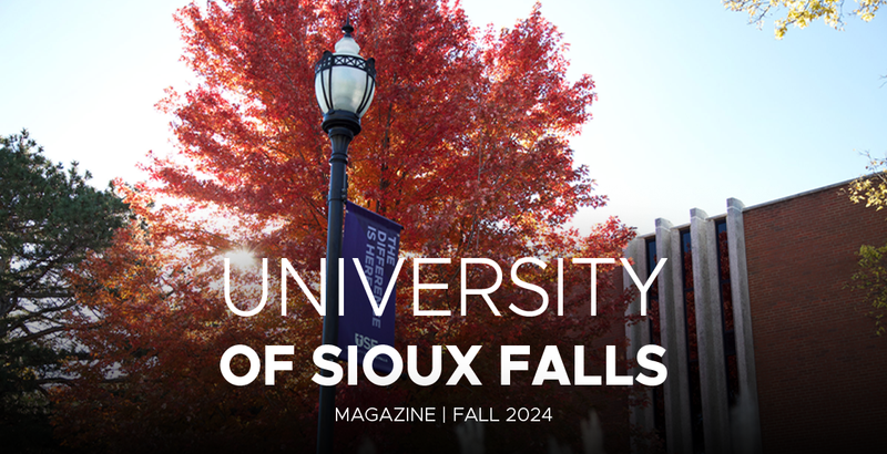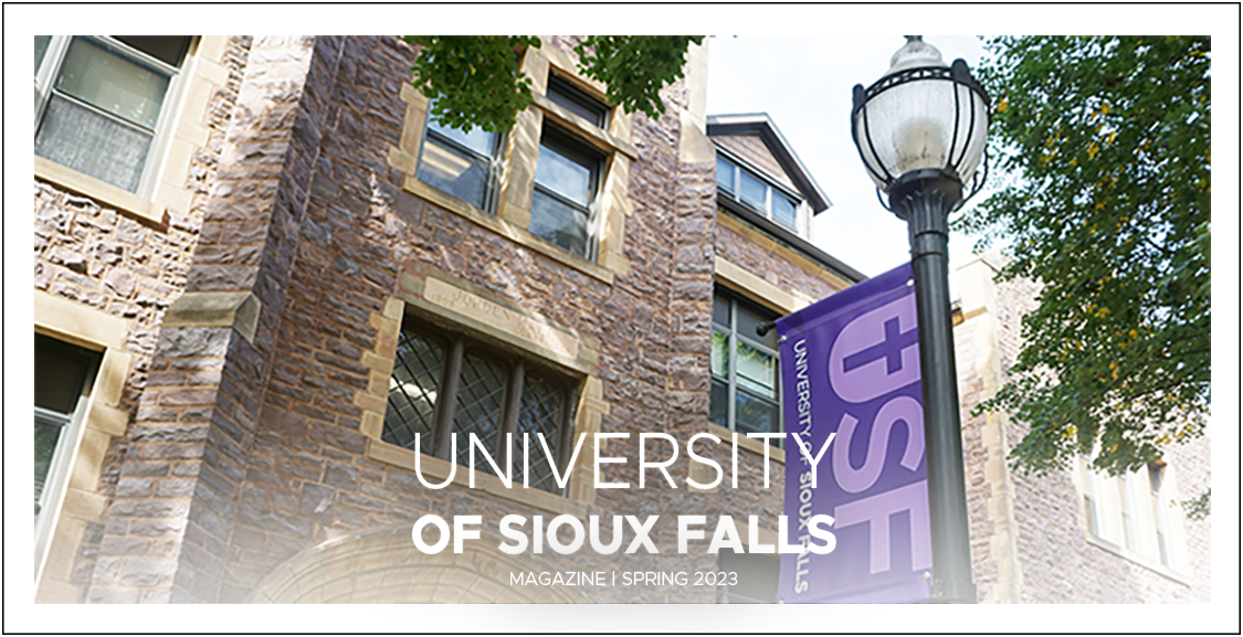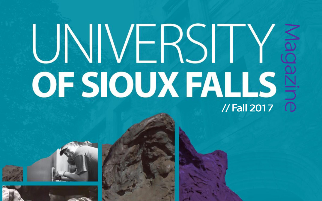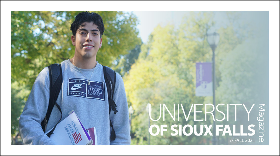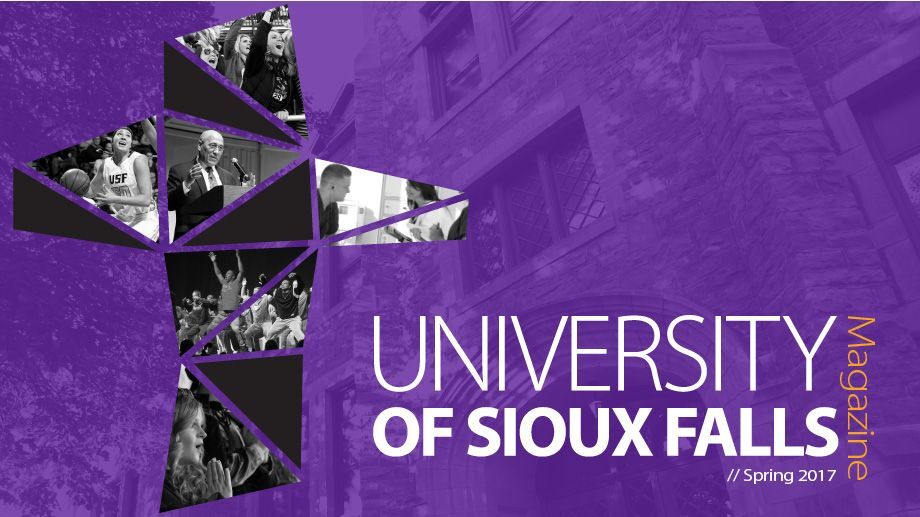 The University of Sioux Falls Magazine is published twice each year and is a collection of stories and news about what is happening at USF. Learn what your classmates are up to or read features about USF, students, faculty, alumni and friends through the University of Sioux Falls Magazine, a CASE award-winning publication.