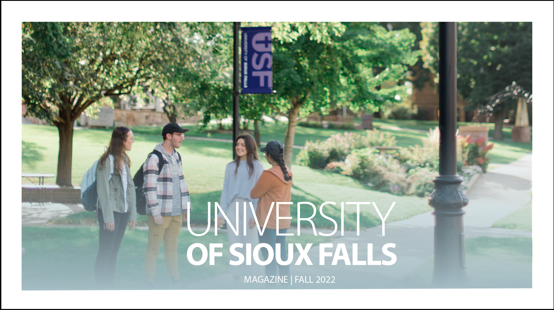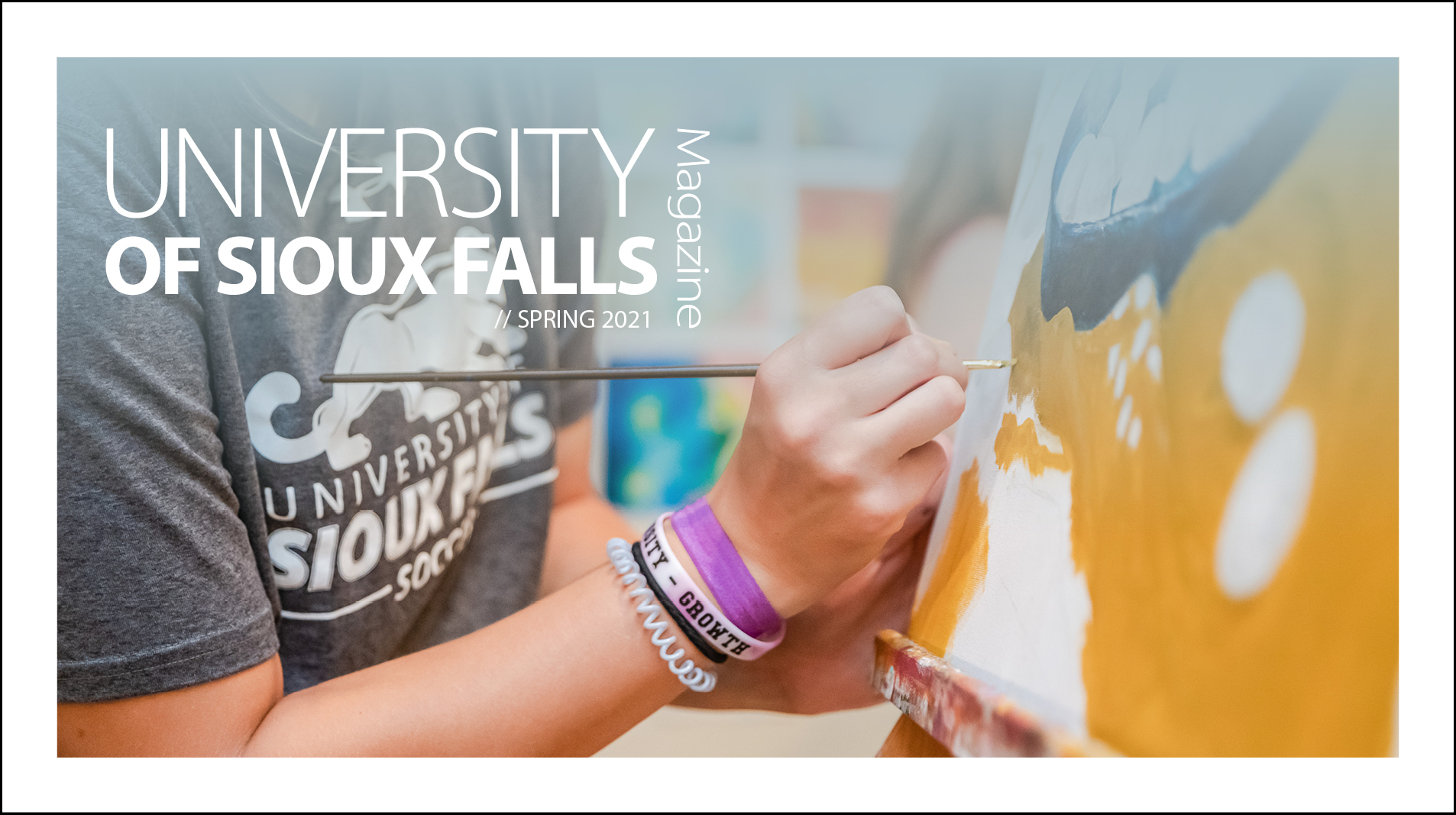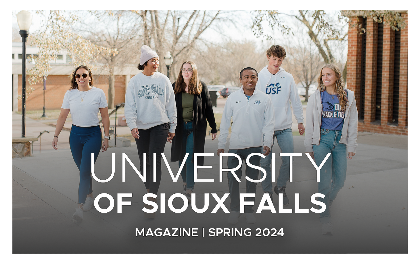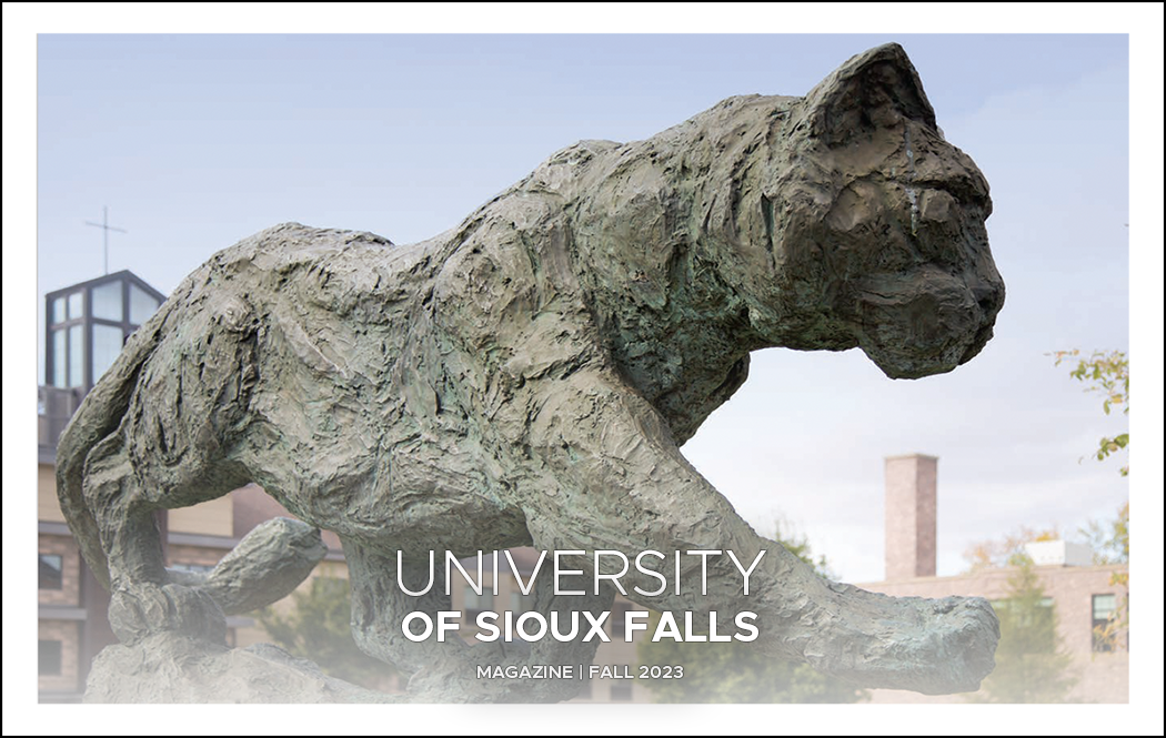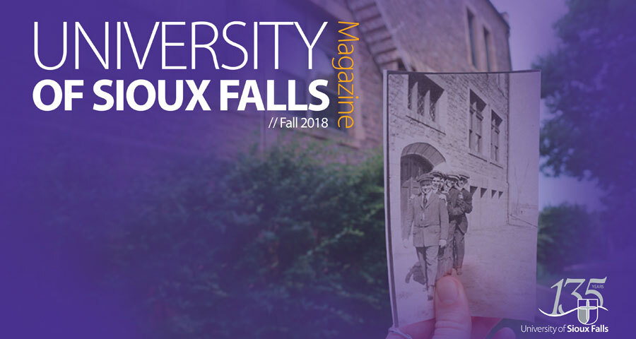 The University of Sioux Falls Magazine is published twice each year and is a collection of stories and news about what is happening at USF. Learn what your classmates are up to or read features about USF, students, faculty, alumni and friends through the University of Sioux Falls Magazine, a CASE award-winning publication.